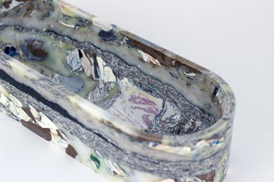 一家名叫Plastinova的西班牙企业曾以龙舌兰花副产物及收购 塑料生成的原材料做成传统式木料的替代物。前不久工业设计师卡持Carter Zufelt也造就了一种新方式,将收购 废弃塑料制做成与众不同的艺术品。现阶段Zufelt 专为此项技术性在 Kickstarter发布Müll新项目,期待一般大家也可以得到这类方式。Zufelt的著作展现了繁杂的图案设计及色调,他的写作全过程能够与夹层玻璃吹制加工工艺相提并论,最终的制成品看上去更像天然大理石。
