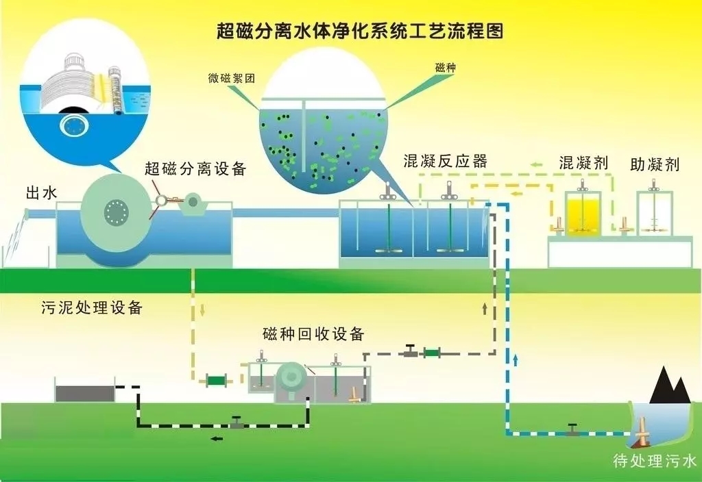 超磁分离出来水质清洁设备是根据磁粉探伤、助凝剂及其水里环境污染化学物质的微磁聚凝功效,将环境污染化学物质与磁粉探伤凝聚力成带磁絮体,再根据超磁分离出来设备造成的高强度电磁场,在磁场力的作用下,使微斜板沉淀池体摆脱液体的摩擦阻力和本身的作用力,造成迅速的定向运动,吸附在硬盘的表层,根据设备的卸渣设备完成泥渣与水质的分离出来,进而做到清洁水体的目地。