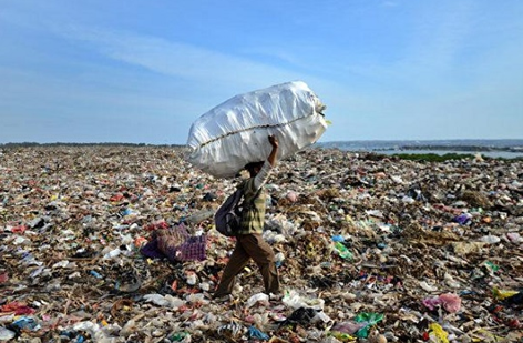 海外科学研究精英团队研究发现,印度尼西亚每4一条鱼中就会有1条肠道中有塑料垃圾。图为�Q里海岛的登巴萨垃圾站。