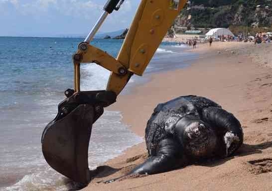 西班牙海滩发现珍稀棱皮龟 因误食塑料渣滓死亡