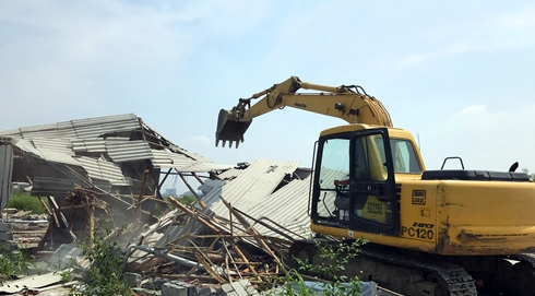 当场也有一座铁皮屋沒有拆除,在汕头市揭阳两个地方环保局责任人一同商议后,当场随时待命的两部勾机一起起动,对最终的一间铁皮屋开展拆除。不上十多分钟,黑作坊被彻底依法取缔,铁皮屋都被夷平。