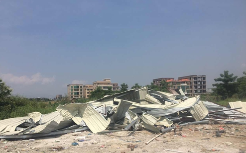 新闻记者一行到达当场时,废塑料生产加工的作坊的铁皮屋早已被拆除的类似,铁皮屋外依然放满一捆捆包装袋子、塑胶袋等各种各样塑胶废料,地面上到处是塑胶屑。