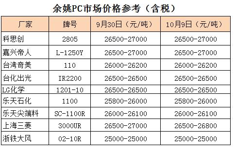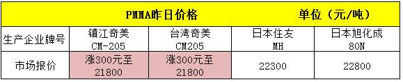 PC、PMMA价格齐上涨