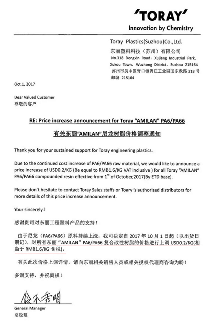 兰蒂奇、塞拉尼斯最新涨价函,PA、POM等齐上涨!