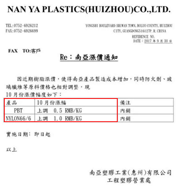 2018年8月21日,新光工业(杭州)有限公司发布PBT价格调涨通知:即日起,PBT全系列调涨800元/吨。 附:涨价函见下图。 这是继长春化工连调两次PBT价格后,又一厂家发布关于PBT的调价函。...