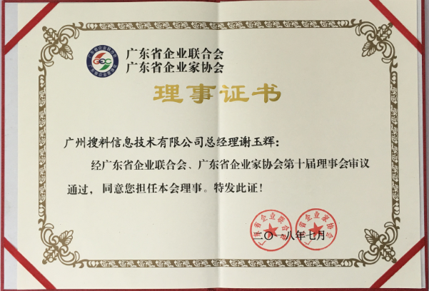热烈庆祝搜料网成为广东省企业联合、企业家协会理事单位