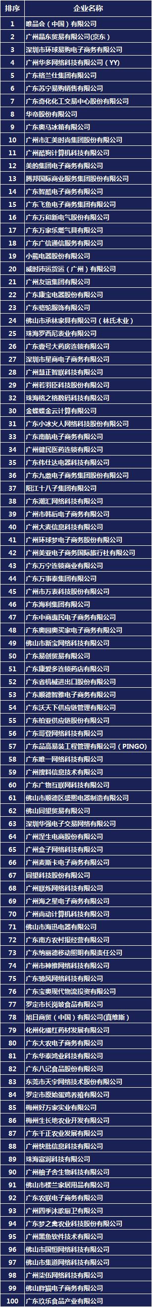 2018年度广东省电商企业100强,唯品会、京东、搜料网等企业上榜