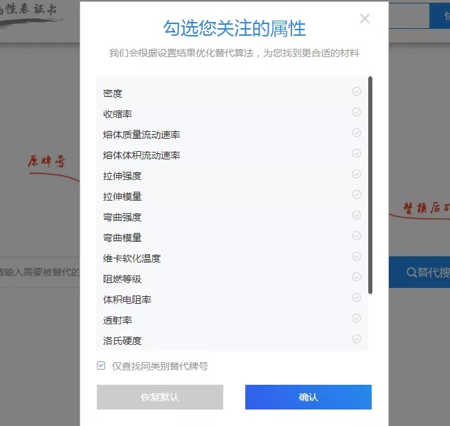 材料替代搜索2.0重磅上线,物性对比、价格对比、专家推荐!
