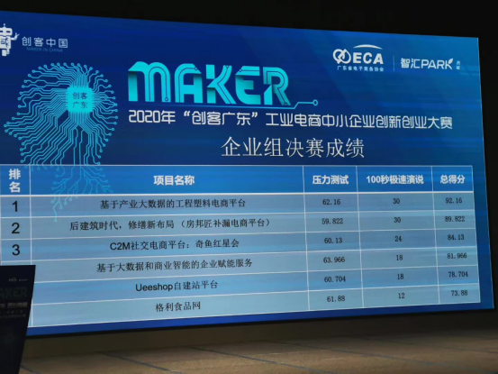 7月16日,2020年“创客广东”工业电商中小企业创新创业大赛复赛·决赛在广州圆满落幕。搜料网作为企业组以“基于产业大数据的工程塑料电商平台”项目参赛荣获大赛一等奖。