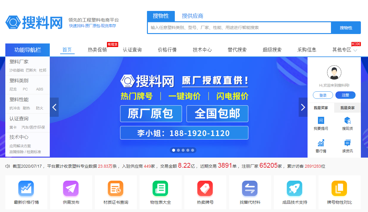 搜料网是以进口工程塑料和塑料物性大数据为切入口,专注于工程塑料的智能交易平台。2020年,搜料网更是加大投入搭建搜料平台全新交易模块,采购信息,热卖促销纷纷上线,增加平台的交易属性,为行业用户提供一站式服务。在塑料产业受疫情及国际大环境冲击的大背景下,搜料网作为工程塑料智能交易平台有难以替代的便利性。