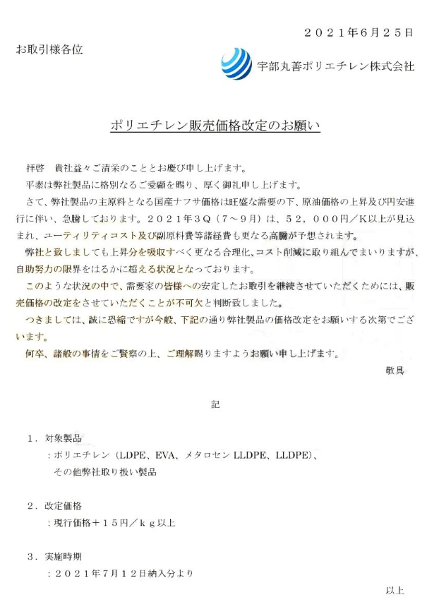 陶氏、盛禧奥等塑企宣布日本和欧洲地区涨价!