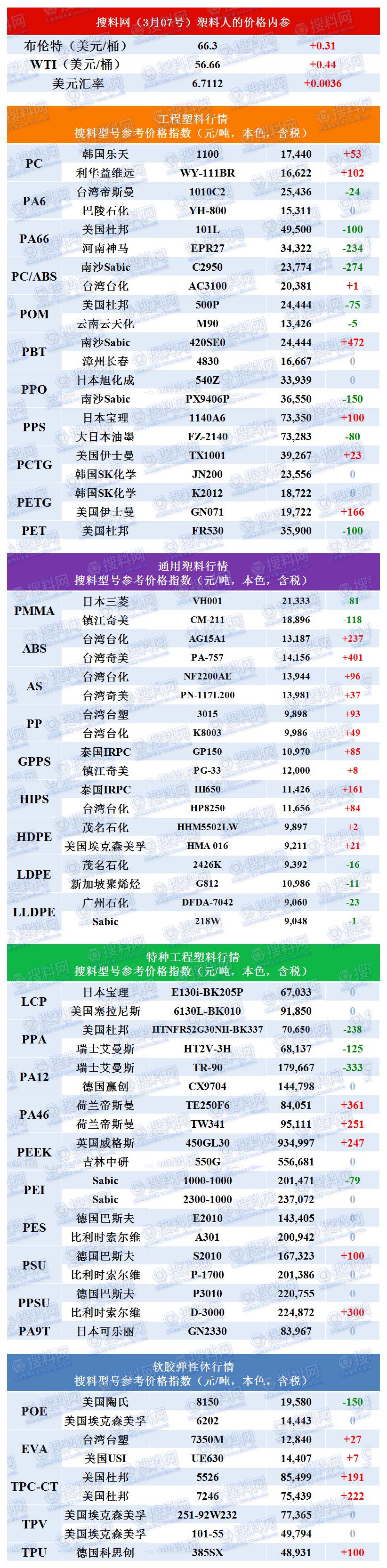 塑界行情:35种塑料70个惯例型号威望参考价(通用/工程/特种/软胶)