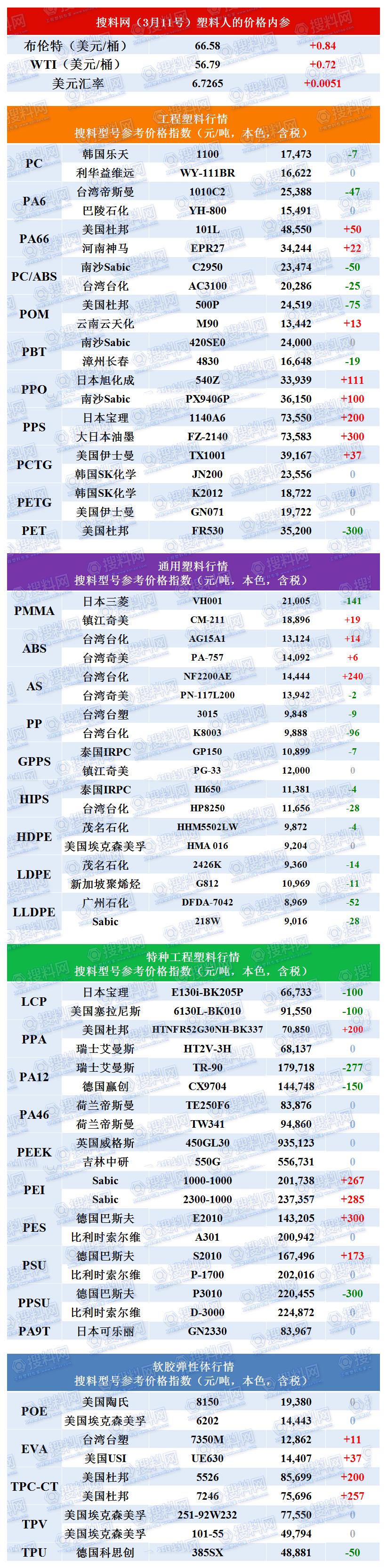第23期 | 塑界行情:35种塑料70个惯例型号威望参考价(通用/工程/特种