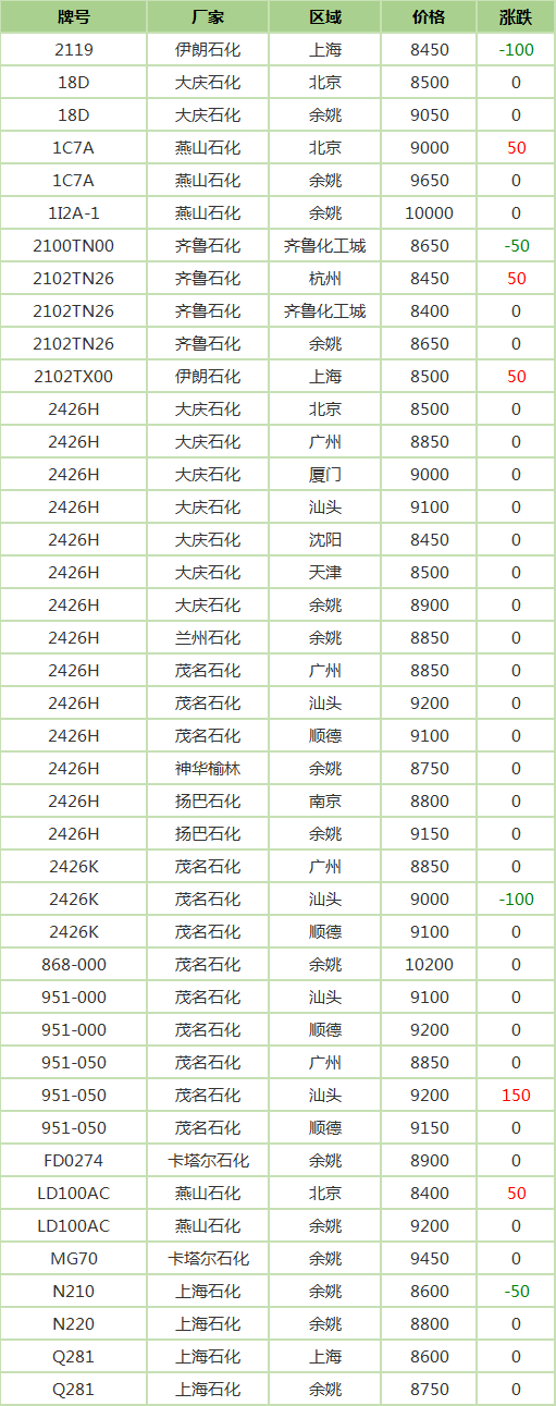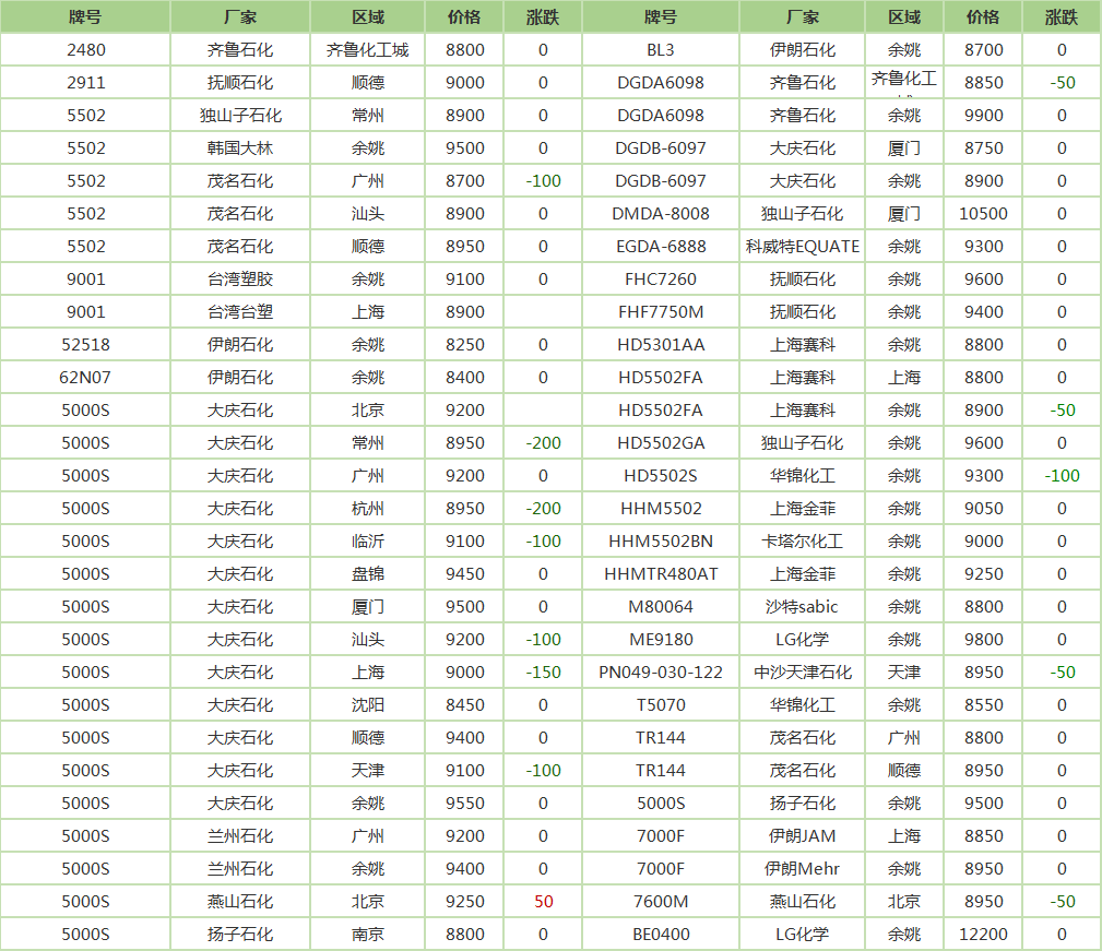 华南塑价弱势震荡!杜邦PE全线上涨,汕头市场PP全线下跌(20