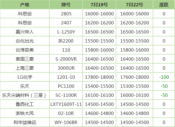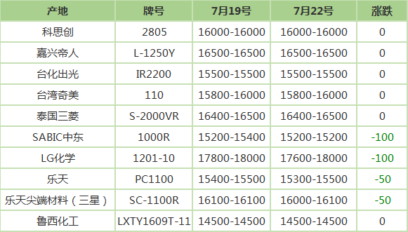 7月22日 PC塑料行情 PC塑料多少钱一吨