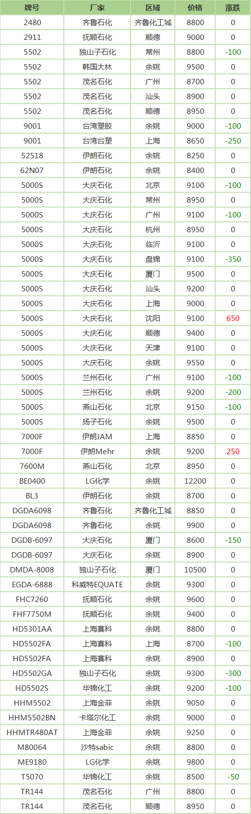 华南塑价弱势震荡!杜邦PE全线上涨,汕头市场PP全线下跌(20