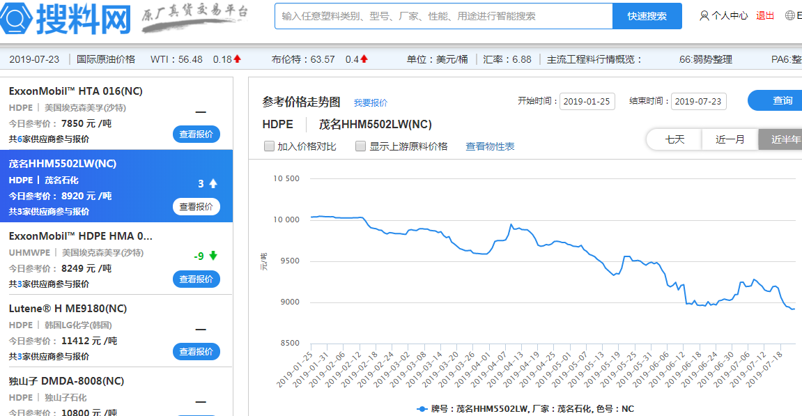 7月23日HDPE价钱 hdpe塑料价钱走势图