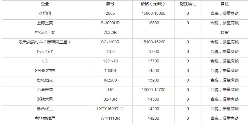 今日国内PC市场气氛延续整理,商家心态谨慎,实单操盘刚需为主。短期市场继续关注国内供应面进一步变化情况,预期行情变动范围有限。目前华东PC市场低端参考在14500-15400元/吨,中高端参考在15400-17500元/吨。