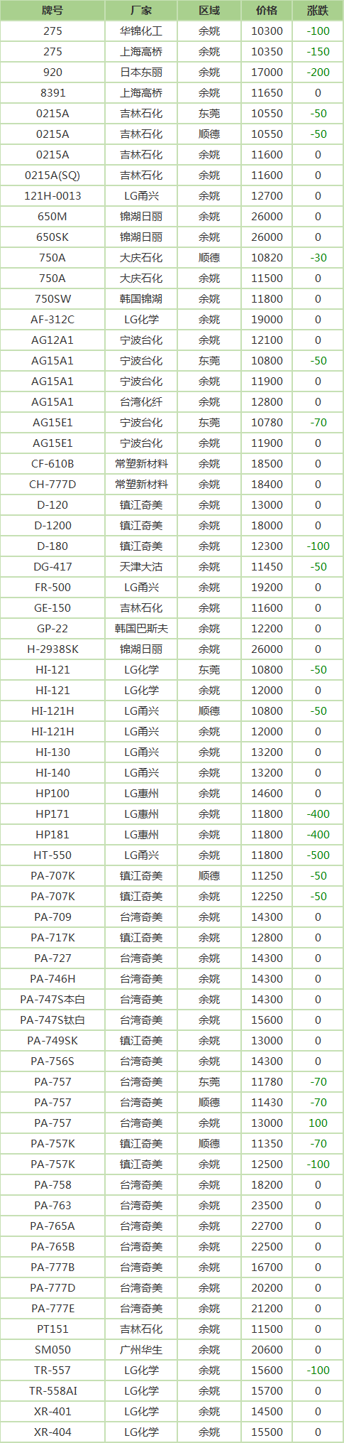 华南塑价弱势震荡!杜邦PE全线上涨,汕头市场PP全线下跌(20