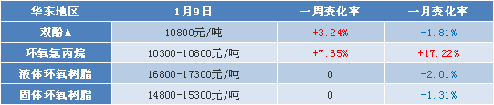 元旦后,双酚A和环氧氯丙烷价格坚定频繁