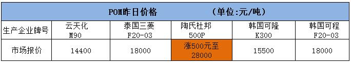 PA6、PA66、PC、POM价钱均有部分下跌