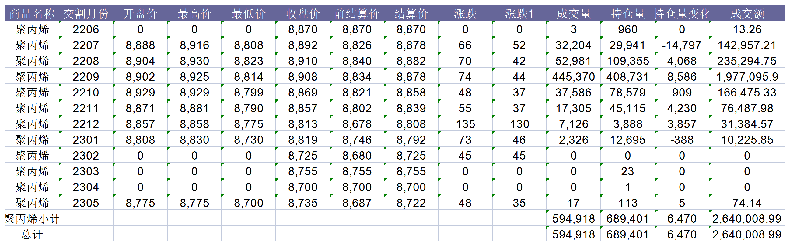大连商品交易所 日行情表 查询日期:20220621 本月第14个交易日 本年第110个交易日 说明: (1)价格:自2019年12月02日起,纤维板报价单位由元/张改为元/立方米 (2)价格:元/吨,鸡蛋为元...