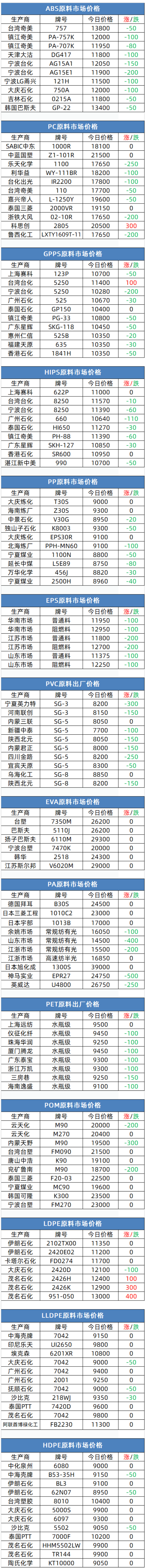 华南塑价弱势震荡!杜邦PE全线上涨,汕头市场PP全线下跌(20