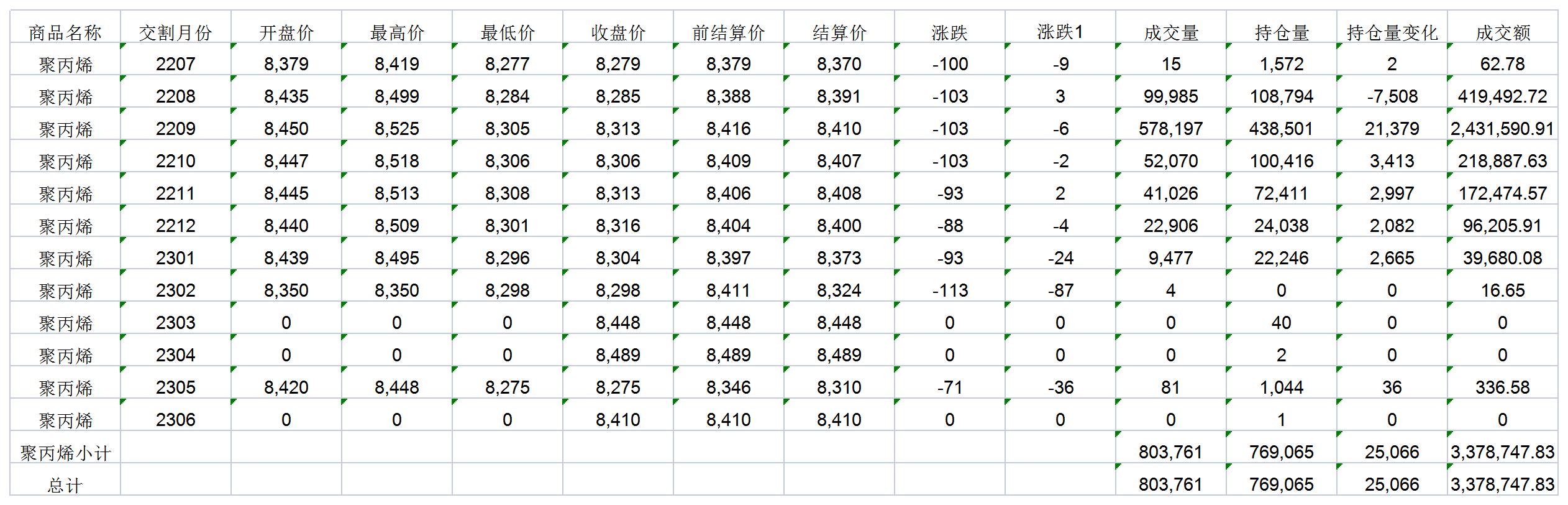 大连商品交易所 日行情表 查询日期:20220623 本月第16个交易日 本年第112个交易日 说明: (1)价格:自2019年12月02日起,纤维板报价单位由元/张改为元/立方米 (2)价格:元/吨,鸡蛋为元...