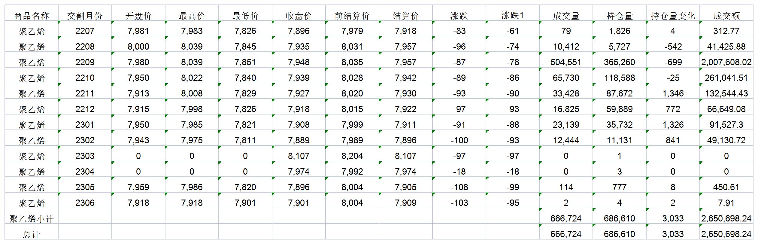 大连商品交易所7月7日PE行情表