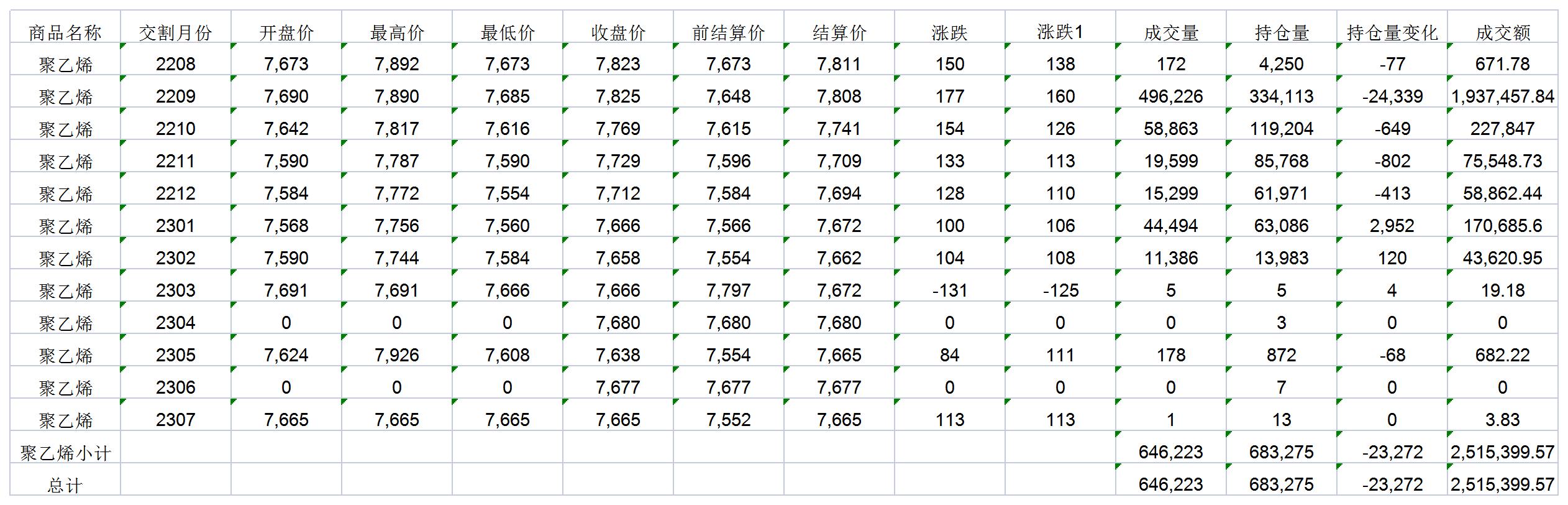 大连商品交易所 日行情表 查询日期:20220715 本月第11个交易日 本年第128个交易日 说明: (1)价格:自2019年12月02日起,纤维板报价单位由元/张改为元/立方米 (2)价格:元/吨,鸡蛋为元...