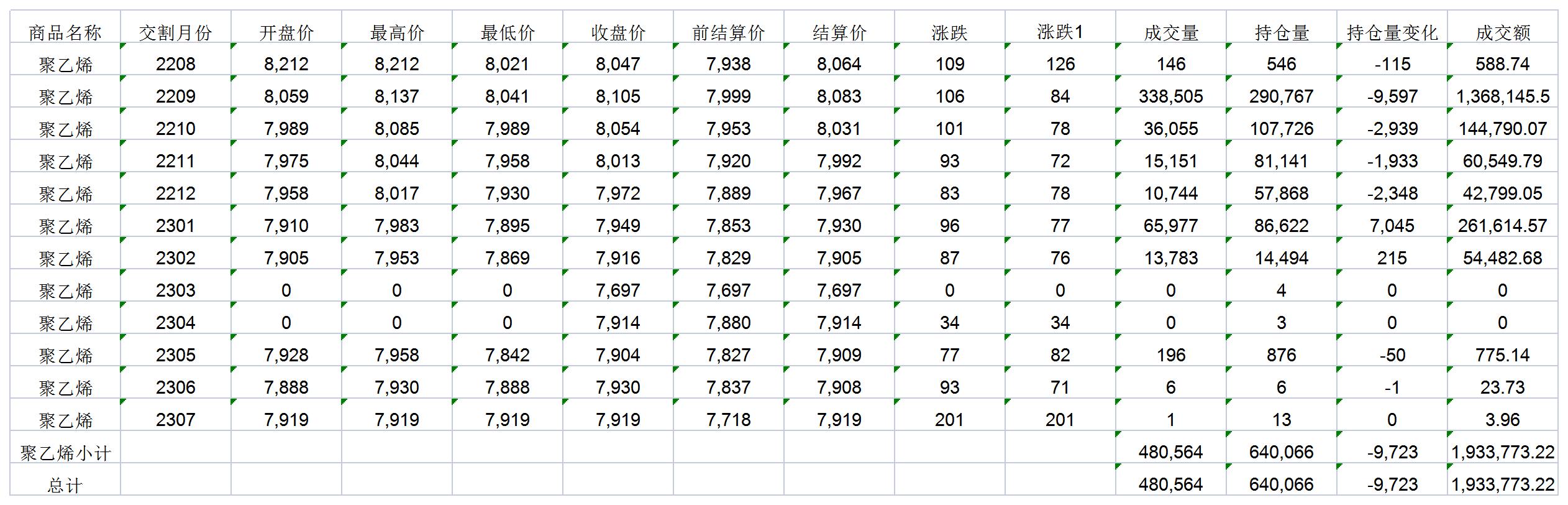 大连商品交易所 日行情表 查询日期:20220802 本月第2个交易日 本年第140个交易日 说明: (1)价格:自2019年12月02日起,纤维板报价单位由元/张改为元/立方米 (2)价格:元/吨,鸡蛋为元...