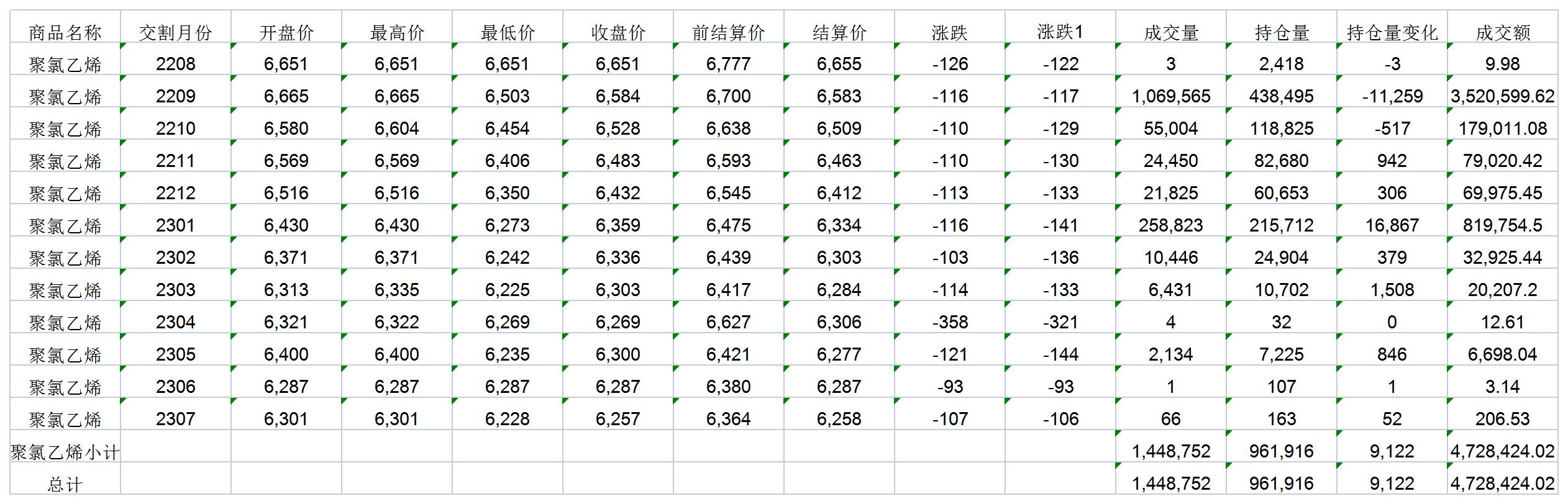 大连商品交易所8月4日PVC行情表