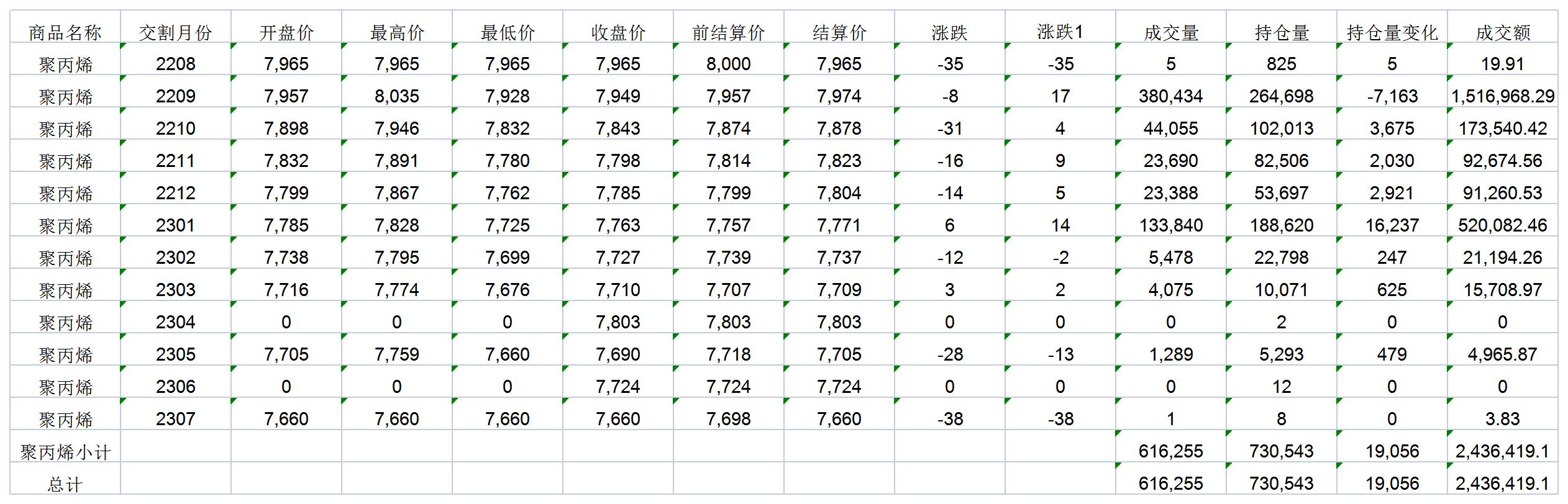 大连商品交易所 日行情表 查询日期:20220808 本月第6个交易日 本年第144个交易日 说明: (1)价格:自2019年12月02日起,纤维板报价单位由元/张改为元/立方米 (2)价格:元/吨,鸡蛋为元...