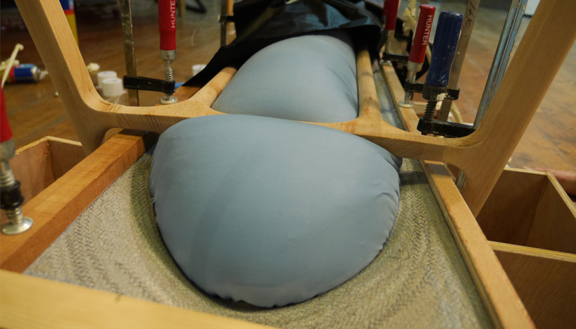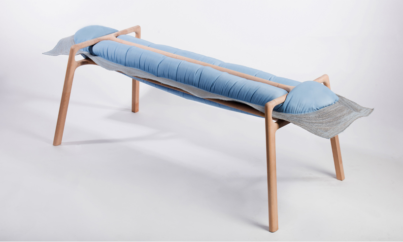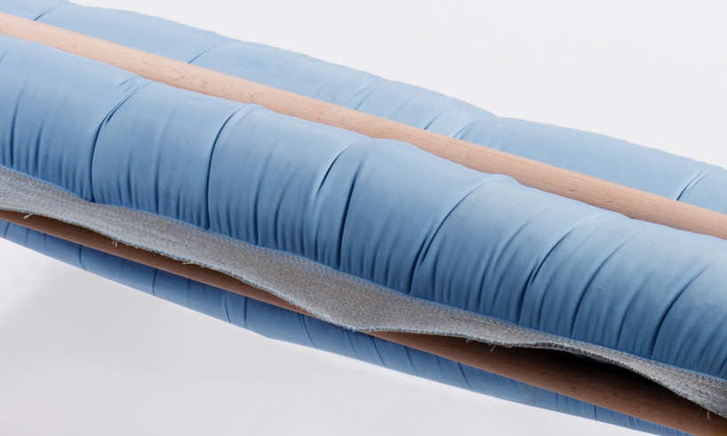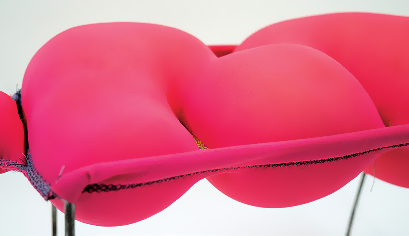 例如长椅,便是Moskona向事先固定不动于木制架构中的莱卡面料不断引入聚氨酯填充物,直到彻底成形后的商品。在对其开展各类设计并挑选适合的颜色、对比度、规格及其材料后,一件怪异却无失品位,可以说外刚内柔的家俱工艺品就是这样问世了。