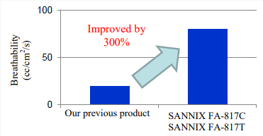 新开发的SANNIX FA-817C和SANNIX FA-817T是用于软聚氨酯泡沫的多元醇。由这些材料组成的软质聚氨酯泡沫具有出色的透气性,能够减少因出汗而产生的闷热感,同时在室温下具有出色的低回弹性。此外,与现有材料不同,由于泡沫硬度的低温依赖性,它在低温下不会变硬。
