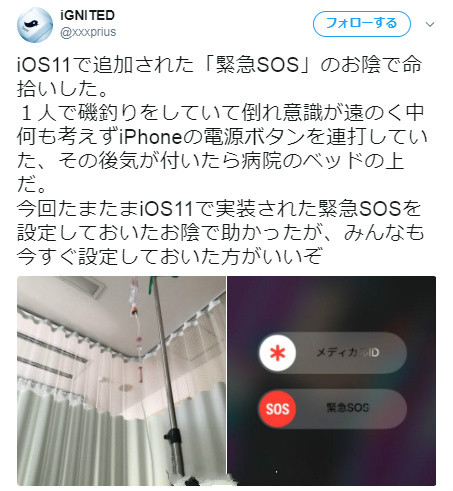 用iOS11新追加的“SOS紧急联络”功用捡回了一条命