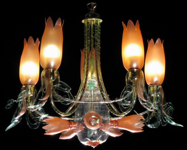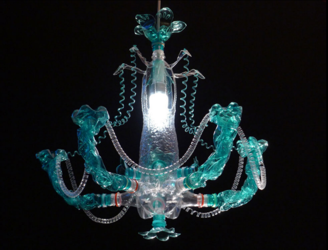 对于Richterova而言,除了利用宝特瓶制作了一些植物装置艺术以外,她还另外创作了各式各样的灯具装置艺术,而这些吊灯装置也是非常具有自己的特色。
