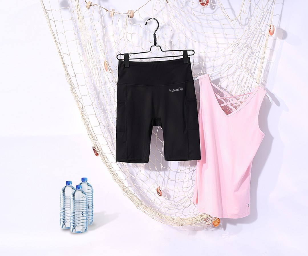 “可持续尼龙可以无限循环再生。由于一系列突破性的研究和处理,我们的尼龙和氨纶混合物中含有75%由渔网制成的回收尼龙。此外,我们的面料设计和开发团队设计了一种优质的材料,感觉如丝般光滑,并拥有双面弹性,便于运动。因此,我们的可持续系列使人们能够在不牺牲功能或环境的情况下最大限度地提高舒适度。”Baleaf的首席织物工程师Lee说。