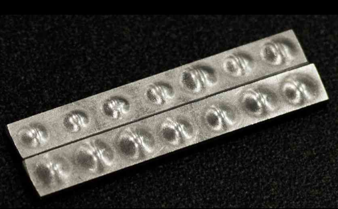 科学家拿一块薄铝板,然后使用镶嵌的滚筒在薄板上形成小的凹痕。与其聚乙烯对应物不同,这些空隙然后用诸如碳酸钙的泡沫材料填充,然后用另一个平的金属片密封。结果:一系列吸收大量能量的气泡,比普通金属板减少30%,将近50倍。它容易制造,而不是太贵,并且很快就可以用于从易货物到自行车头盔的集装箱。
