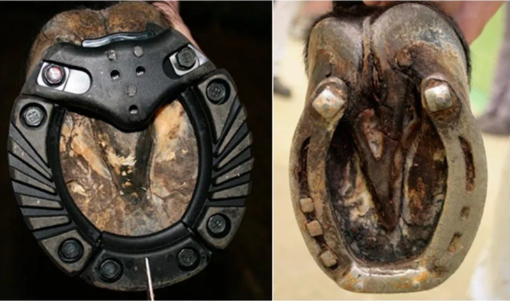 研究发现表明,钢制马蹄铁的底部覆盖有柔软的聚氨酯,可能有助于减少马前腿的超负荷。