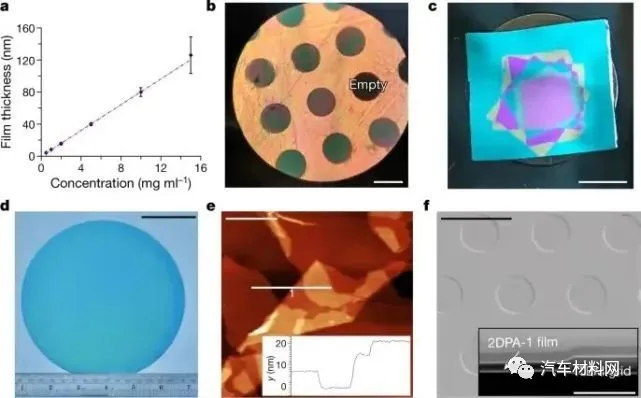 更关键的是,在片状的分子平面,让分子在二维上把自己勾在一起,这种机制可以在溶液中自发地发生,从而很容易地旋涂薄膜,正是因为它可以在溶液中自组装,因而可以通过简单地增加起始材料的数量,大量制造非常坚固但极薄的材料。
