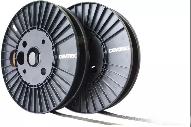因此,Cevotec开发了cevoTape,即一种由高质量碳纤维粗纱制成的干纤维展开丝束,它们由共聚聚酰胺粘结剂粘接在一起。