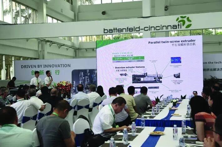 巴顿菲尔辛辛那提(中国)在板式办公家具加工厂举办的机器设备演示会主题活动中,初次展现了用以PVC管材生产制造的全新升级双螺杆挤出机。