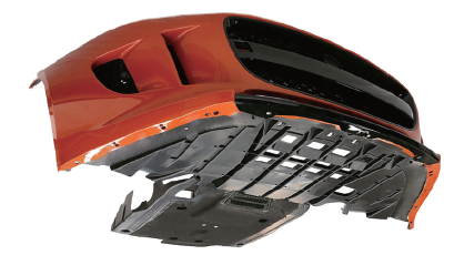 捷豹F 型保险杆和车身底板部件顶视图。全部部件由POLYTEC 企业的不一样各个部门选用不一样的技术性生产制造(图片由POLYTEC 集团公司出示)。