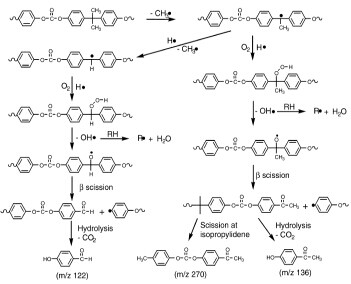 从上边的反映原理我们可以发觉,聚丙烯在遭受氧自由基攻击而且在co2的参加下,会产生β降解,并进一步造成代烃化学物质(VII)。当这类解链产生在链端情况下,就会造成溴化氢。每产生一次就会形成溴化氢。因而溴化氢的散发性,在聚丙烯这类原材料的检测中,都较为高。