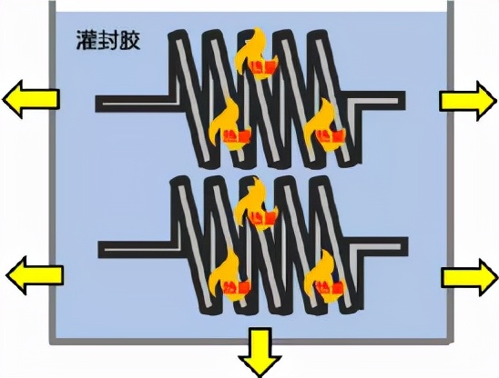 基于有机硅具有独特的物理化学性能及出色的耐老化等性能,目前较为普遍的热管理方案是使用具有一定导热系数的有机硅灌封胶将电磁感应元器件进行整体灌封。