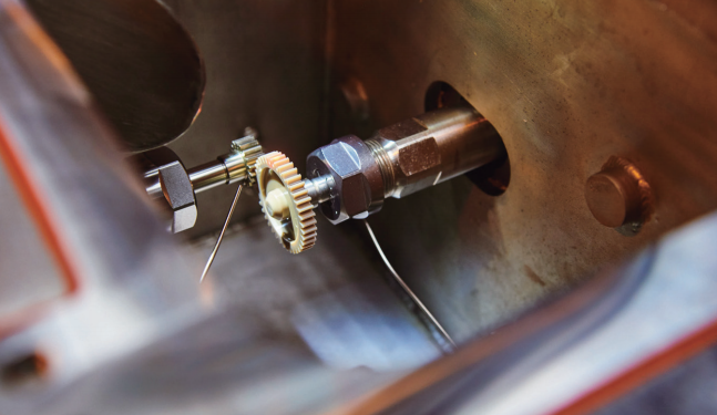 位于德国达姆施塔特市的赢创摩擦学能力中心安装了一个用于测试塑料齿轮的齿轮试验台:它可通过确定部件特定的特征值来进行齿轮设计 ©赢创