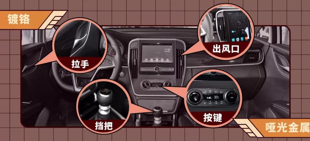 为了让内饰看着不廉价,在按键、挡把、出风口、拉手这些地方,车厂还会加镀铬或者哑光金属。