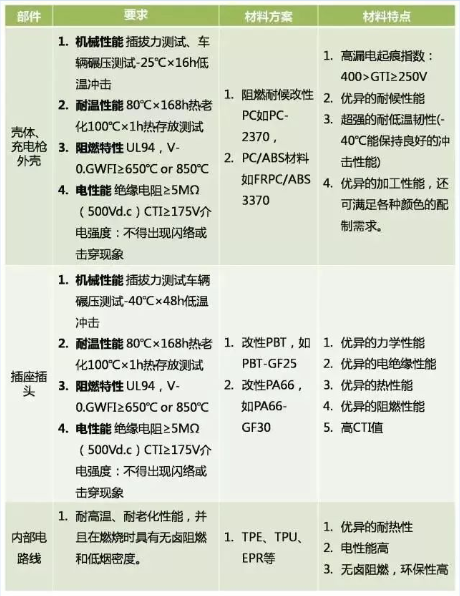 充电设施包括充电桩、高压线、高压接插件和充电枪等高压部件。其重要性与车内的动力电池一样,都需要考虑充电的阻燃性、安全性等方面。