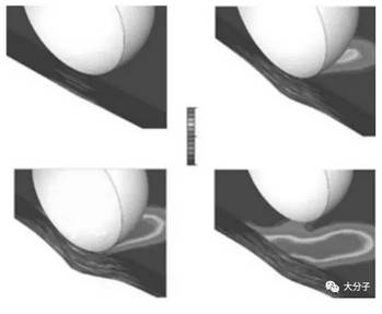 图4 低速档冲击下一层胶合板不一样時刻的损害仿真模拟結果